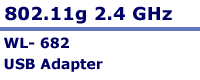WL-682 802.11g 54Mbps USB Adapter SparkLAN WL-682 Wireless 11g USB Network Adapter speeds up your data transmission rate to 54Mbps which is five times faster than the 802.11b devices. Since 802.11g products share the same 2.4GHz radio band with all other 802.11b devices, SparkLAN WL-682 is backward compatible with all the current 802.11b devices. With SparkLAN Wireless 11g USB Network Adapter for your notebook or desktop to increase your mobility in both wireless 11b and 11g network environments. It also supports full mobility and seamless roaming from cell to cell. Security wise, it employs Wired Equivalent Privacy (WEP) with 64/128-bit encryption; it also includes AES algorithm for enhanced data protection during wireless transmission. Installation Wizard will guide you through easy set up steps. Once the installation is done, all you have to do is just plug the WL-682 into the notebook or desktop USB slot and enjoy the wireless high speed experience. Benefits and Features: